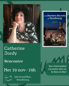 Présentation du livre Les Charmes discrets de Strasbourg à la librairie Quai des Brumes, le mercredi 19 novembre 2025 à partir de 19h, en compagnie de l'auteur et du photographe, Christophe Hamm. Conversation autour du livre et séance de dédicaces.